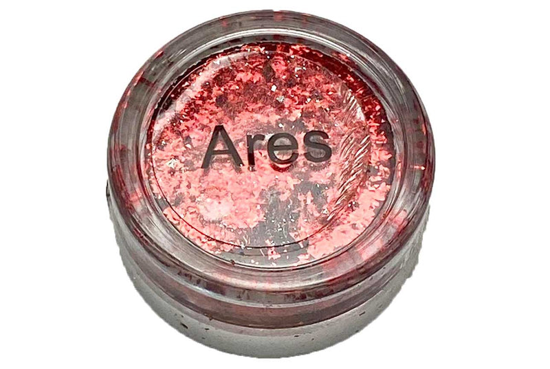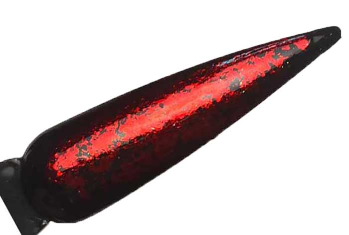 Ares is a metallic Red nail art flake that gives an incredible look to nails. This premium and super-soft flakes will melt into a tacky layer of gel polish giving an impressive finish.