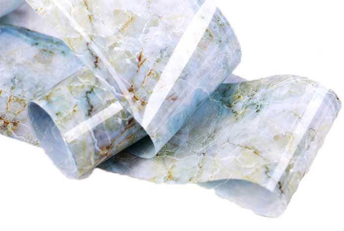 Light Blue Marble is an all-over blue foil with soft stone coloured patches throughout giving a marble effect - it is heavily detailed so would suit full coverage or partial coverage.