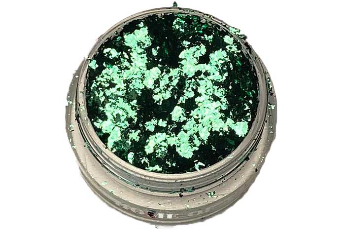 Poseidon is a metallic turquoise nail art flake that gives an incredible look to nails. This premium and super-soft flakes will melt into a tacky layer of gel polish giving an impressive finish.