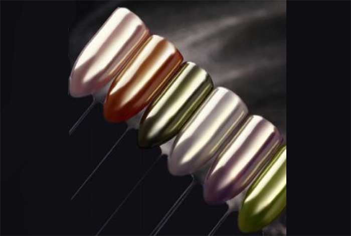 HONA's silver mirror chrome will give any coloured gel polish a high mirror silver chrome effect leaving the original colour as a subtle undertone.