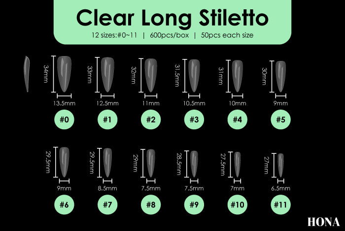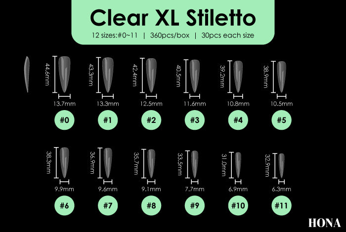 Stiletto Full Cover Extension Tips are available in Clear (Short, Medium, Long & XL) and Matte (Short, Medium & Long) please note short stiletto is half matte.