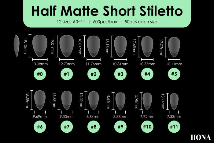 Enhanced Sizing Options: SwiftTips has an expanded range to include many half-size options in our matte versions, making tip sizing and preparation faster and more straightforward. The most popular SwiftTip lengths come in half sizes, catering to a wider range of nail sizes and shapes. all part of HONA's mission to be as inclusive as possible.